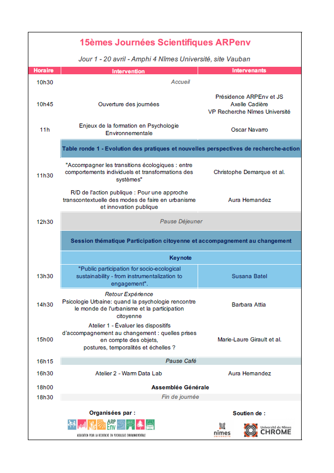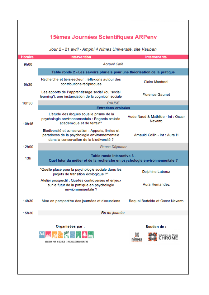15ème Journées Scientifiques ARPEnv avec le soutien de l’UPR CHROME – Nîmes Université